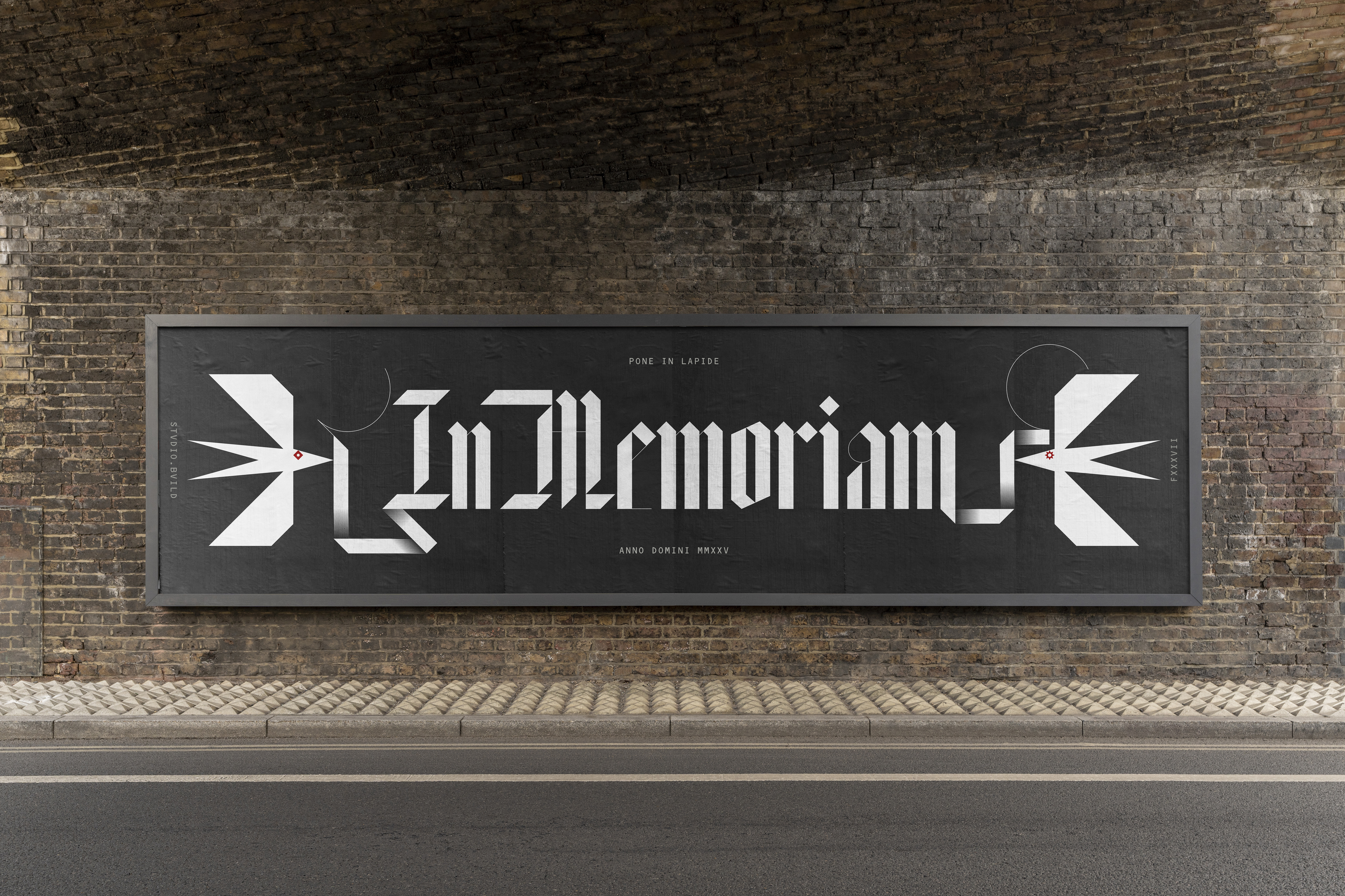 I'm a big fan of 'things' that don't look quite right. With In Memoriam I started with the letter cap A (original I know) and went from there. I also love contrasts, so I made the contrast between thick and thin really big. For me it adds a lovely delicate but brutal quality to the character of the font. I like people to sometimes have to work a little when looking at design. I like niche things too, Blackletter is very niche, a nice challenge. I love the way the font looks and feels VERY sharp, very precise. But then Rodrigo (my collaborator at F37) and I had some fun with things like the swashes and extra stylistic sets, alts and a lot of extra features.